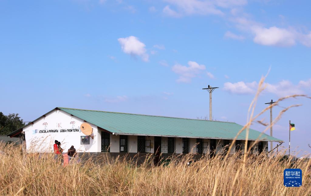 这是7月26日在莫桑比克马普托省戈巴弗龙泰拉村拍摄的装有中国援助的卫星电视接收天线的学校。