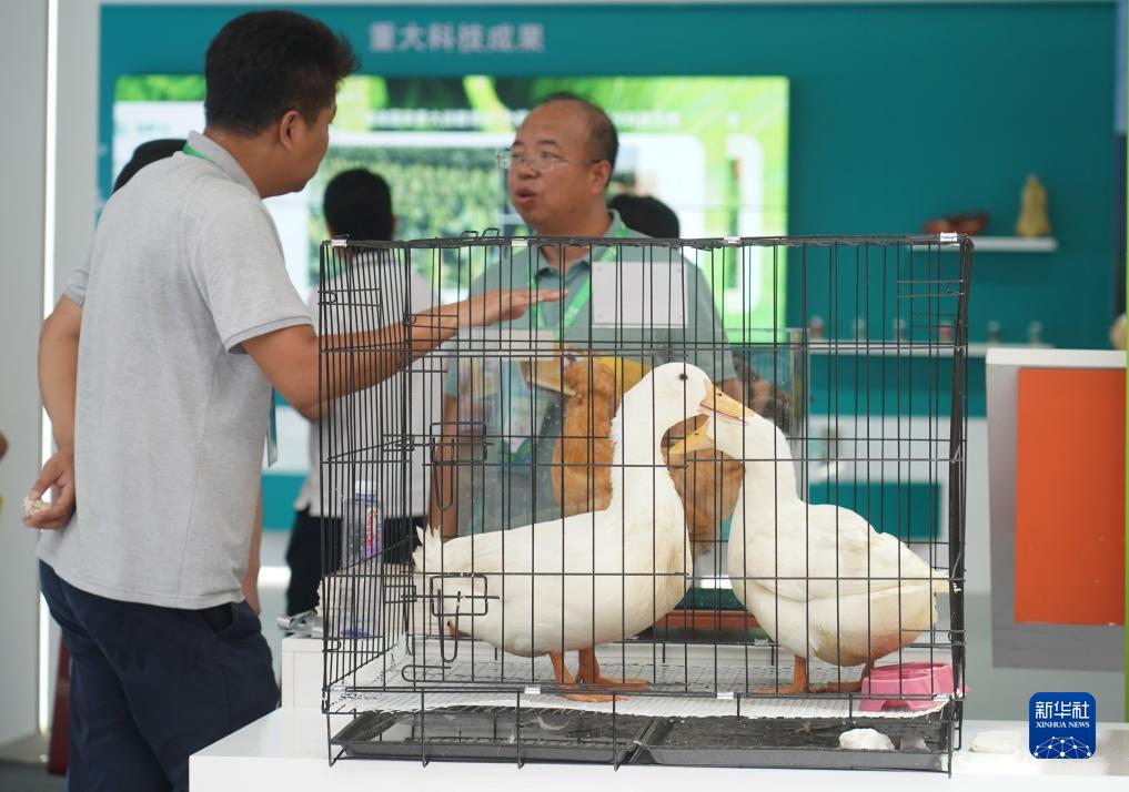 9月11日在第三十届中国北京种业大会种业振兴成果展现场拍摄的北京鸭。