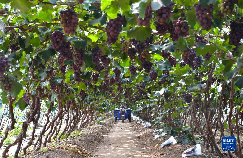近日,辽宁省灯塔市种植的辽峰葡萄喜迎丰收。灯塔市出产的辽峰葡萄远近闻名,目前种植面积约1万亩。当地已形成葡萄培育、种植、销售、仓储、加工相关产业链,葡萄是当地农民致富增收的特色产业。