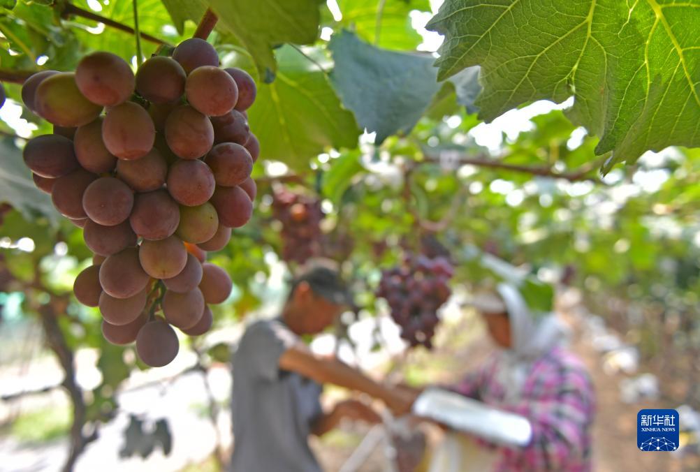 近日,辽宁省灯塔市种植的辽峰葡萄喜迎丰收。灯塔市出产的辽峰葡萄远近闻名,目前种植面积约1万亩。当地已形成葡萄培育、种植、销售、仓储、加工相关产业链,葡萄是当地农民致富增收的特色产业。