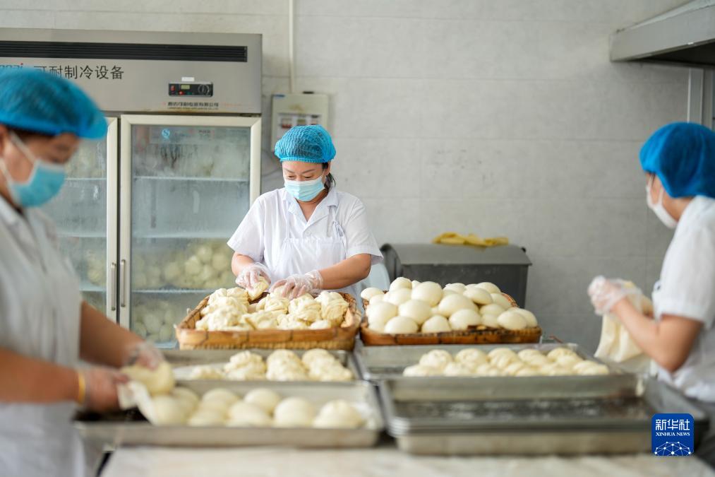 9月12日,河北省唐山市古冶区一家养老机构的工作人员为老人们准备餐食。