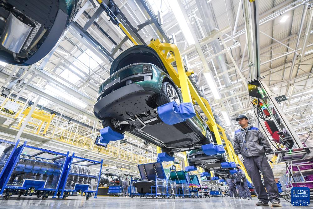 理想汽车江苏常州基地的工人在进行生产作业(2023年2月15日摄)。
