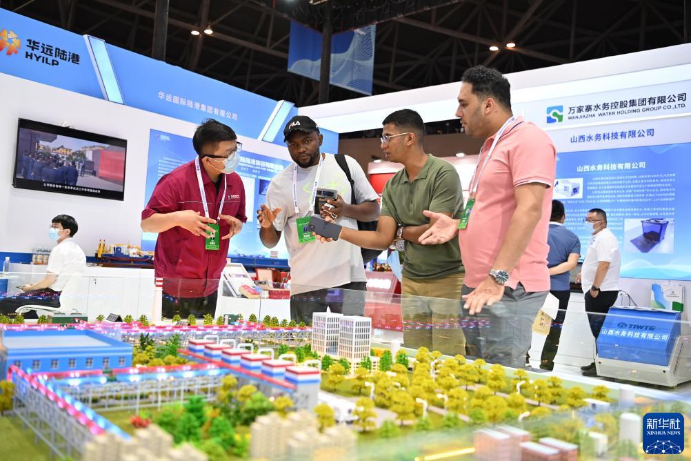 中外参展商在2022中国(太原)国际能源产业博览会上交流(2022年9月2日摄)。