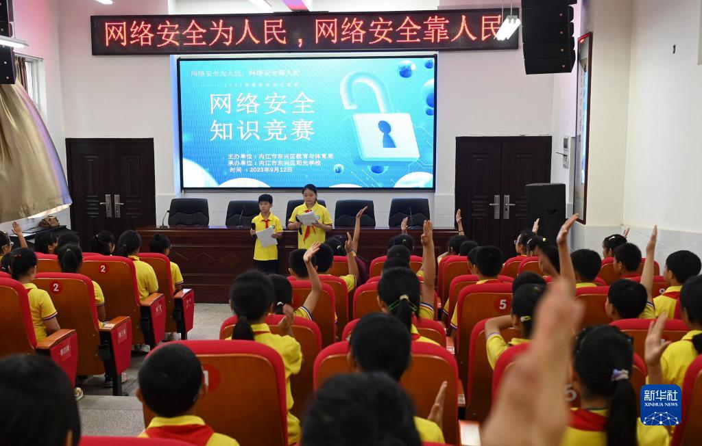 9月12日,在四川省内江市东兴区阳光学校,学生参加网络安全知识竞赛活动。