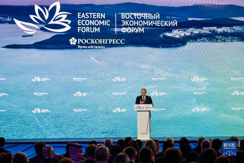 9月12日,俄罗斯总统普京在第八届东方经济论坛全体会议上讲话。