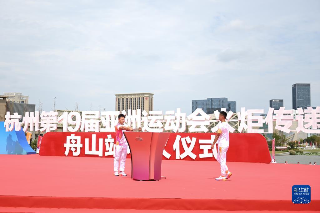 当日,杭州亚运会火炬在浙江省舟山传递。