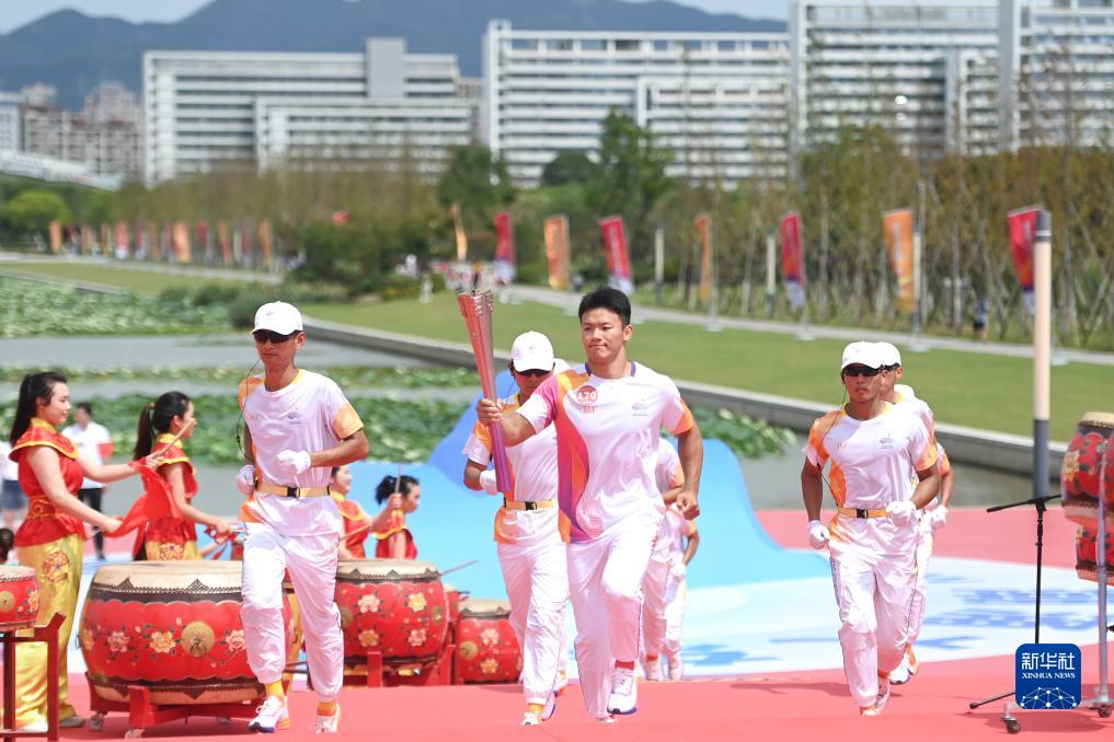 当日,杭州亚运会火炬在浙江省舟山传递。