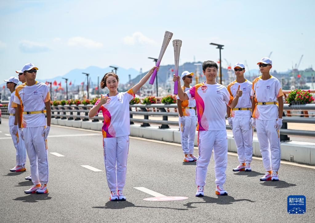 当日,杭州亚运会火炬在浙江省舟山传递。