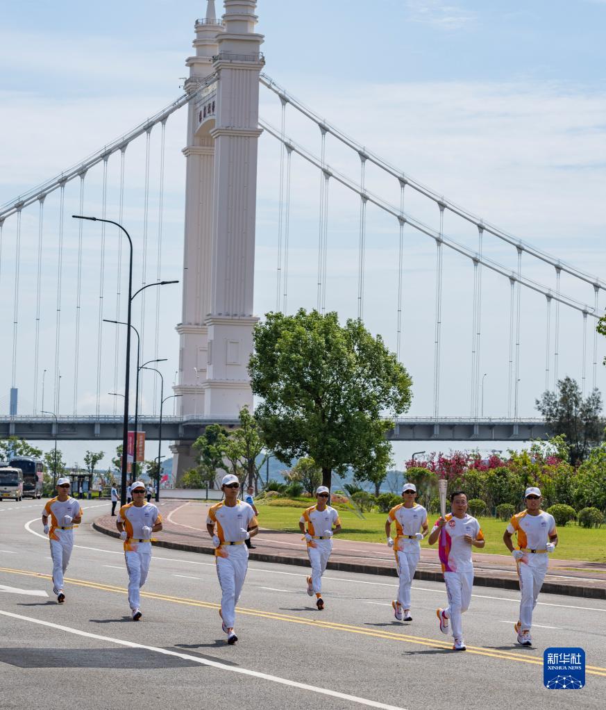 当日,杭州亚运会火炬在浙江省舟山传递。