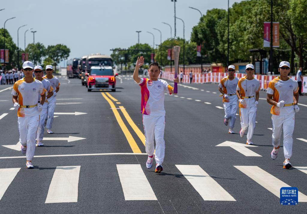 当日,杭州亚运会火炬在浙江省舟山传递。