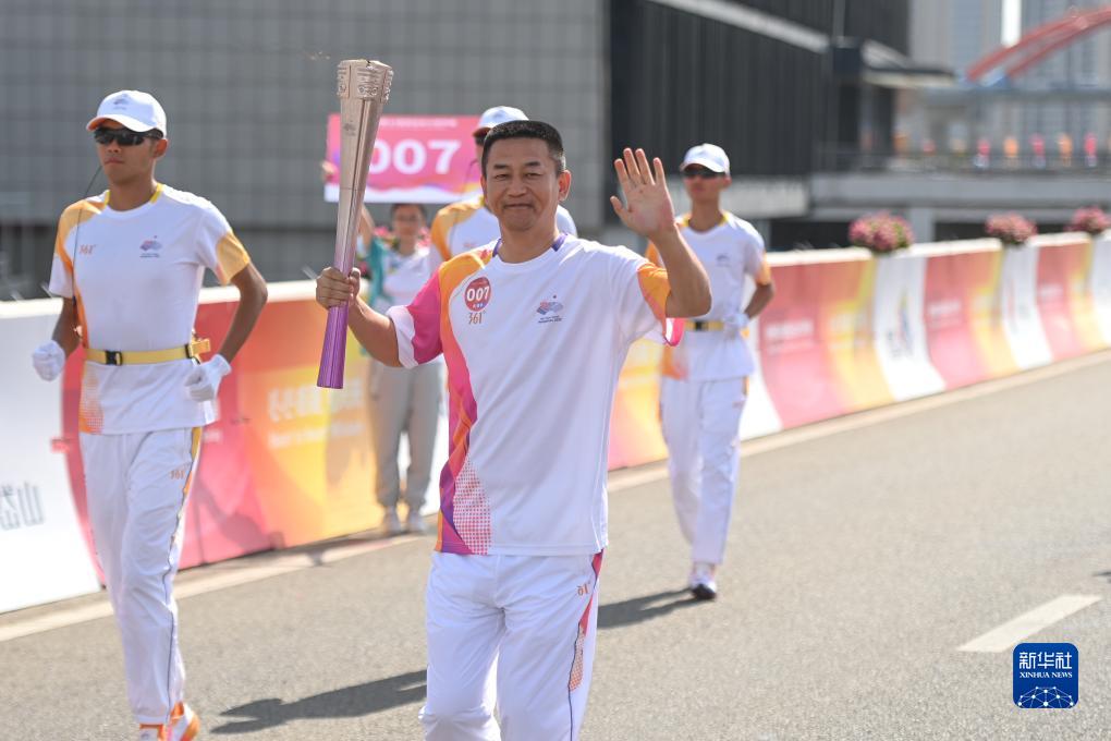 当日,杭州亚运会火炬在浙江省舟山传递。