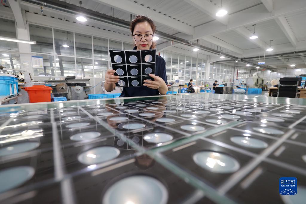 9月13日,德清县禹越镇一家电子生产企业的工人在检测安防装饰板订单产品。