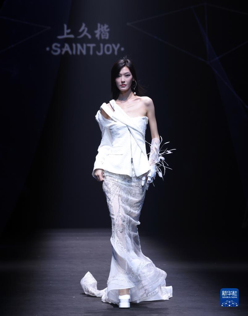 当日,在北京举行的中国国际时装周(2024春夏系列)上,“上久楷·边惠中SAINT.JOY by Huizhong Bian”时装发布会举行。