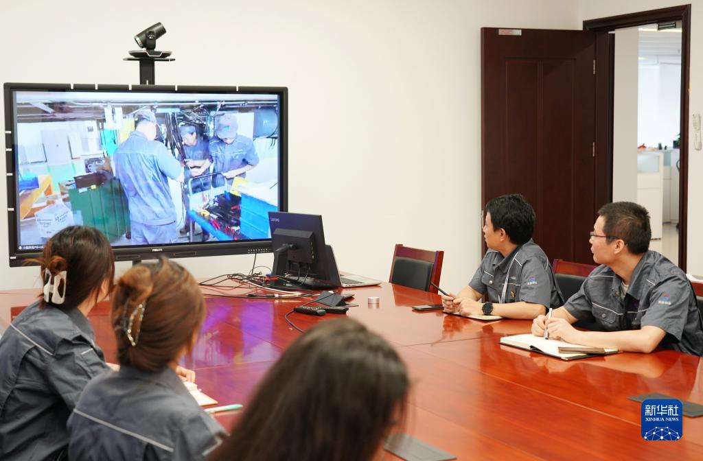 8月10日,京投装备技术研究院的工程师视频连线河北京车智能制造基地查看地铁列车建造现场。