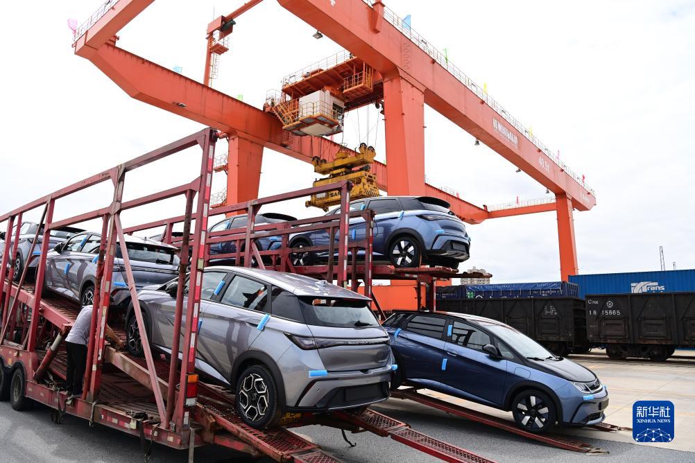 当日,一列满载150辆新能源汽车专列由江西赣州国际陆港驶向深圳盐田港。该趟专列将通过铁海联运方式,在深圳盐田港装船出海,发运至荷兰鹿特丹港。这一多式联运通道的顺利开通,将助力中国汽车加速“出海”。