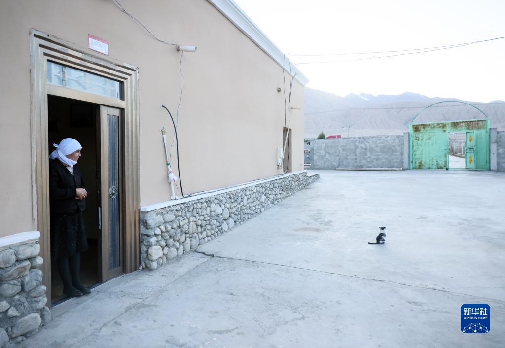 9月5日,拉齐尼的妻子阿米娜·阿力甫夏站在家门口。新华社记者 兰红光 摄