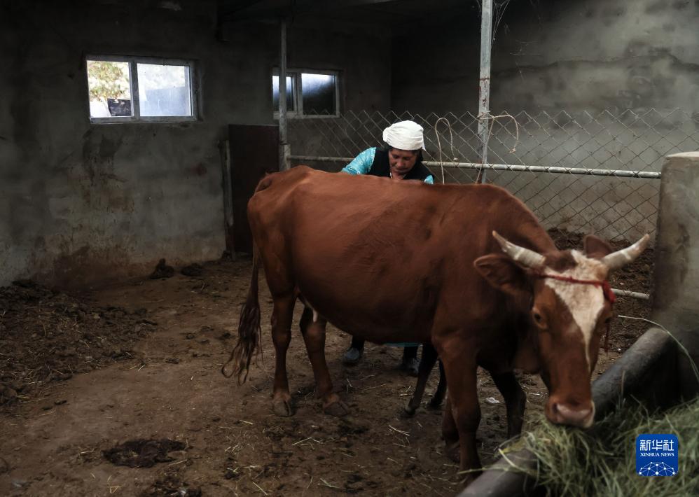 9月5日,巴依卡老人的老伴帕热扎·加依克准备挤牛奶。新华社记者 兰红光 摄