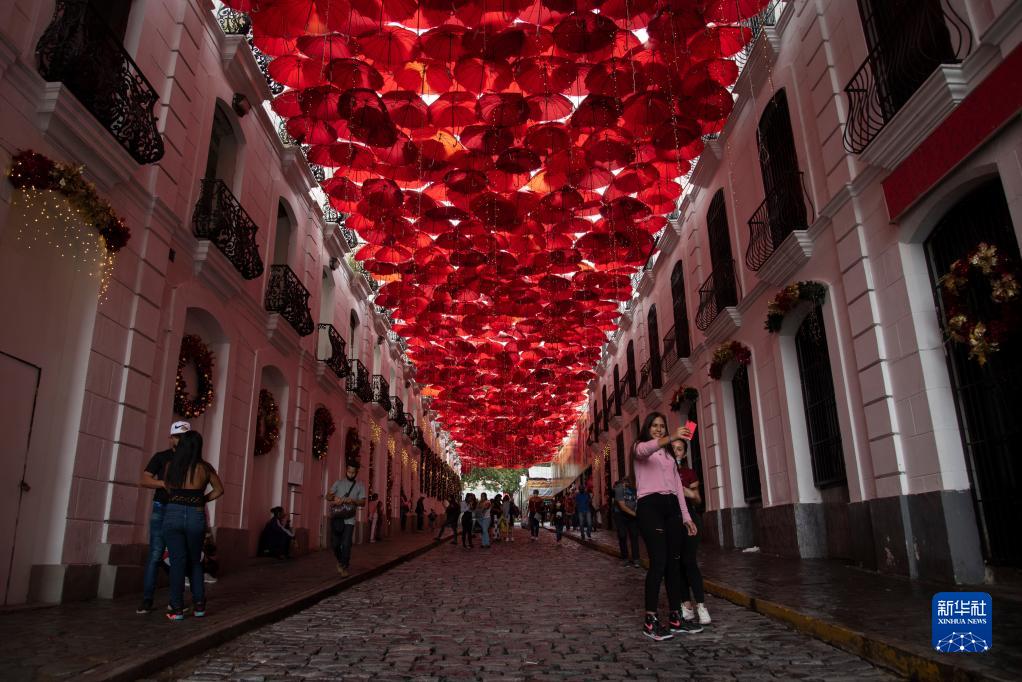 2021年12月13日,人们在位于委内瑞拉首都加拉加斯市中心的一条街道上拍照。
