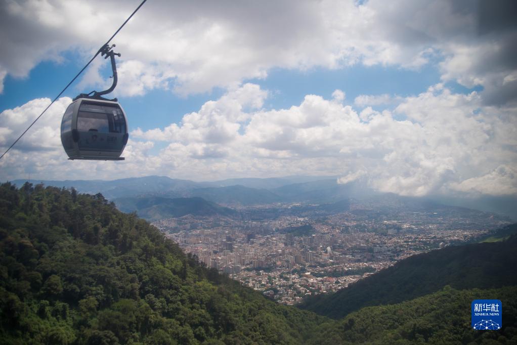 这是2018年12月28日拍摄的委内瑞拉首都加拉加斯著名旅游景点阿维拉山上的缆车。