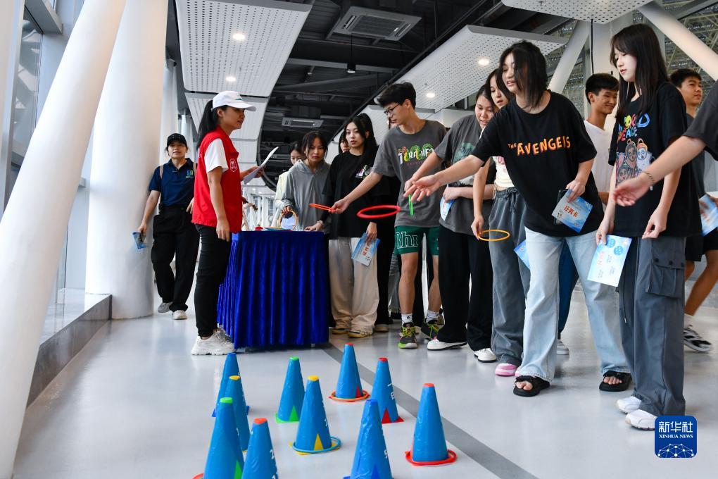 9月13日,在深圳龙岗能源生态园,学生们参与垃圾分类互动游戏。