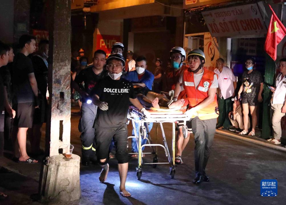 9月13日,在越南河内,救援人员从事故现场转移伤者。