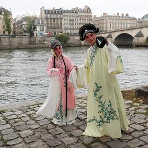 作为“文明遇·鉴:中国昆曲江苏周”系列活动之一,江苏省演艺集团昆剧院院长施夏明、江苏省演艺集团昆剧院国家一级演员孔爱萍13日走上巴黎街头,在著名地标建筑前以“快闪”的方式展示昆曲艺术。