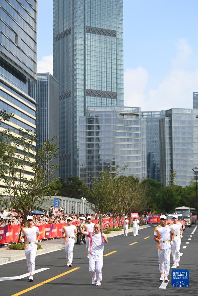 当日,杭州亚运会火炬在浙江省台州传递。