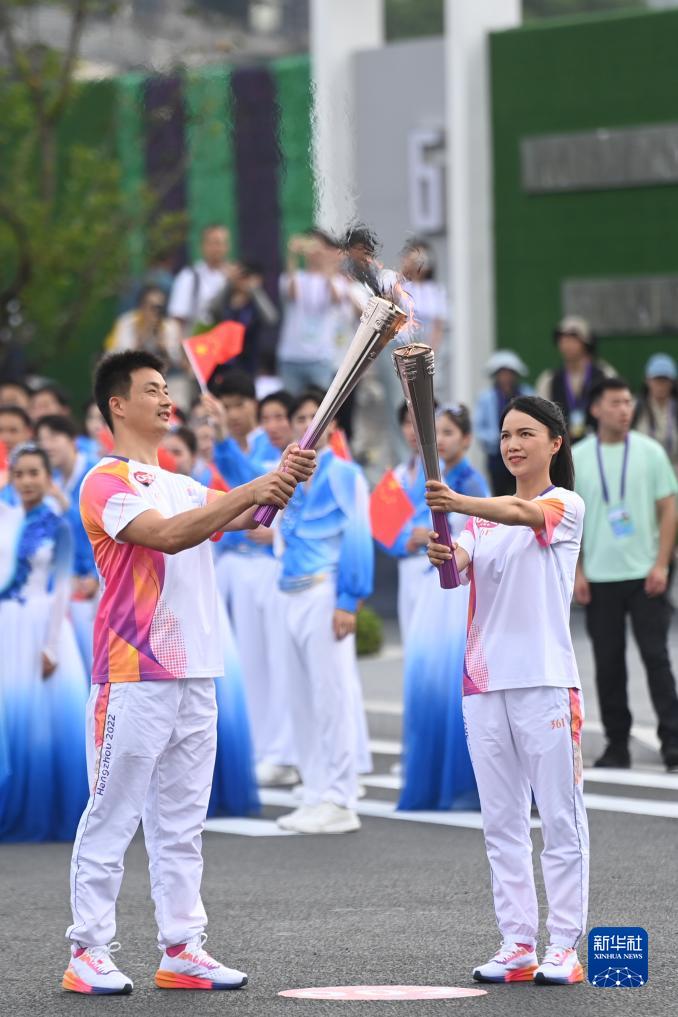 当日,杭州亚运会火炬在浙江台州传递。