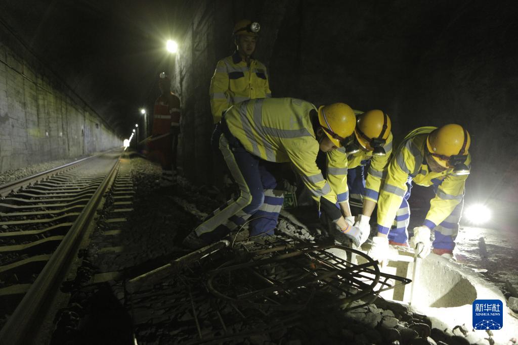 9月13日,在大兴安岭地区白卡尔隧道,中国铁路哈尔滨局集团有限公司加格达奇工务段的铁路工人准备下井,检查排水系统的畅通情况。