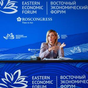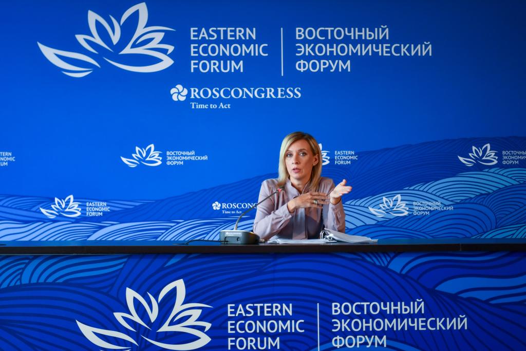 9月13日,俄罗斯外交部发言人扎哈罗娃在符拉迪沃斯托克举行的新闻发布会上讲话。