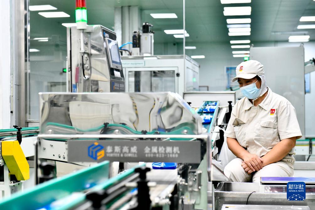 9月12日,在滨州中裕食品有限公司挂面生产车间,工作人员在流水线上值守。