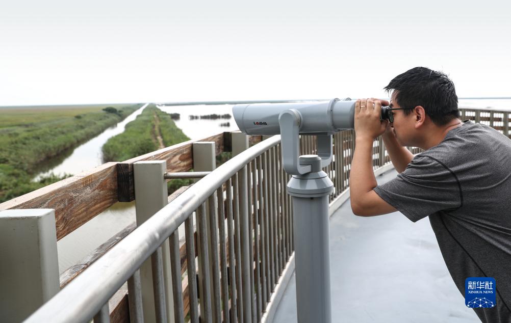 李征浩在观鸟台上观测(2023年8月21日摄)。新华社记者 杨磊 摄