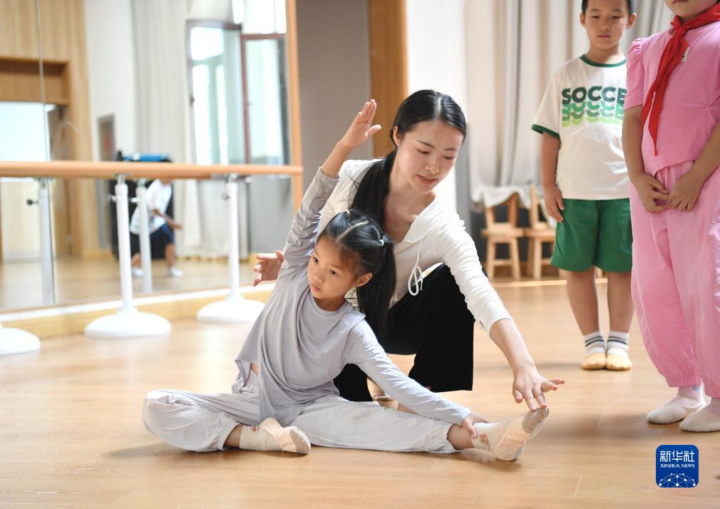 9月13日,雄安史家胡同小学舞蹈老师指导学生练习舞蹈。