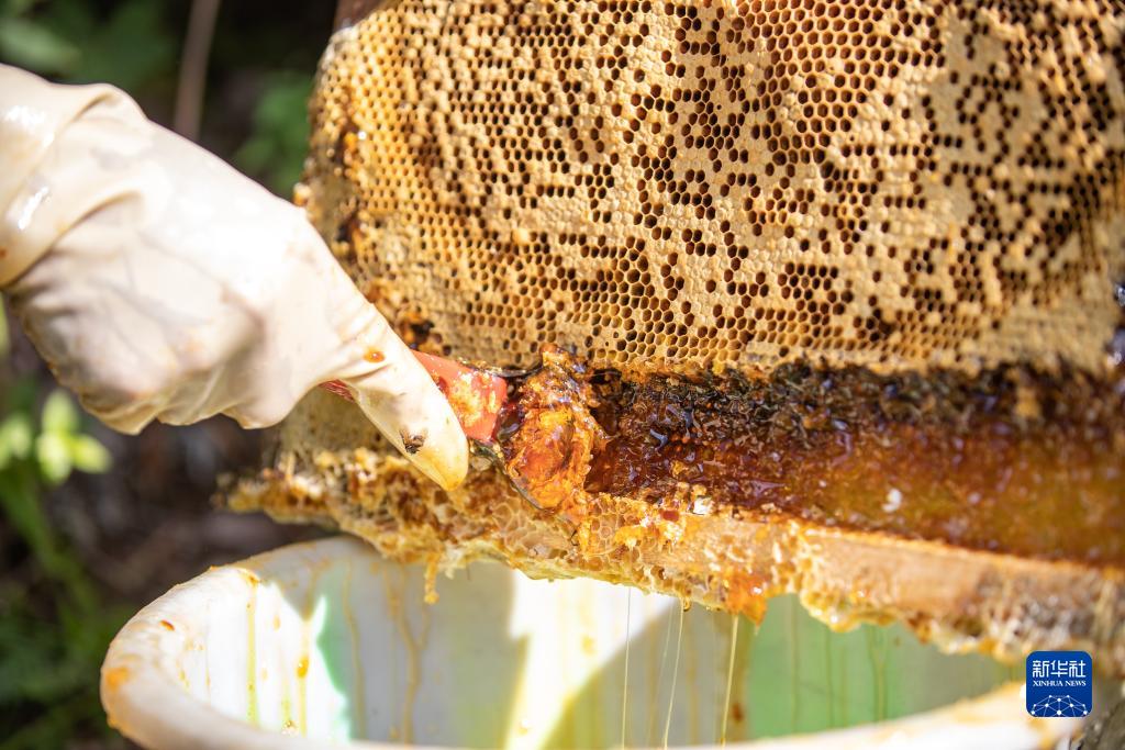 9月13日,在重庆市城口县巴山镇农民村,蜂农在采收蜂蜜。