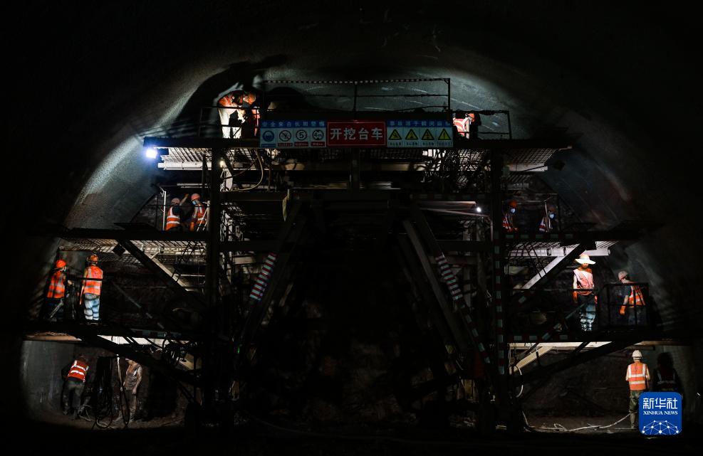 9月14日,工人在渝湘高铁重庆至黔江段站前3标张家山隧道项目作业。