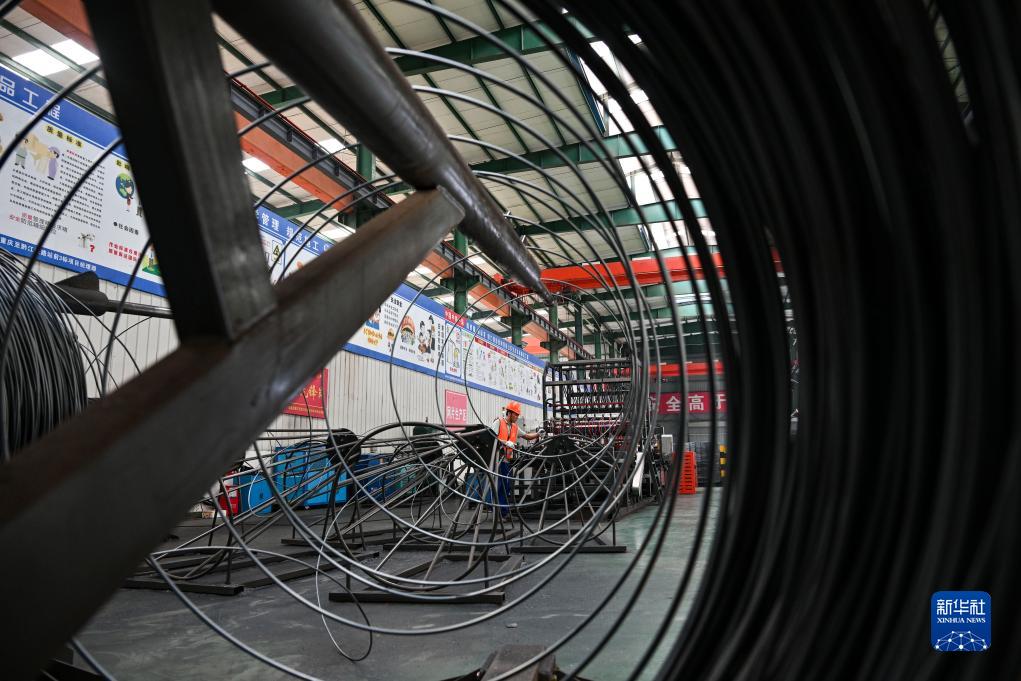 9月14日,工人在渝湘高铁重庆至黔江段站前3标智能化钢构厂作业。