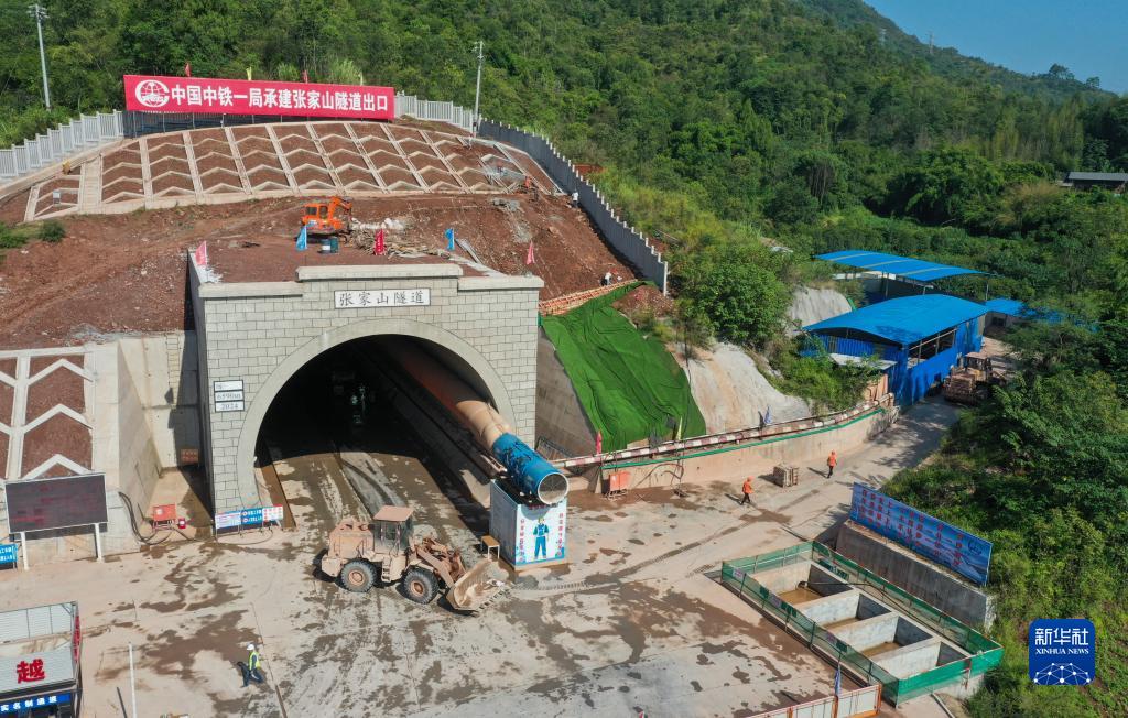 这是9月14日拍摄的建设中的渝湘高铁重庆至黔江段站前3标张家山隧道(无人机照片)。