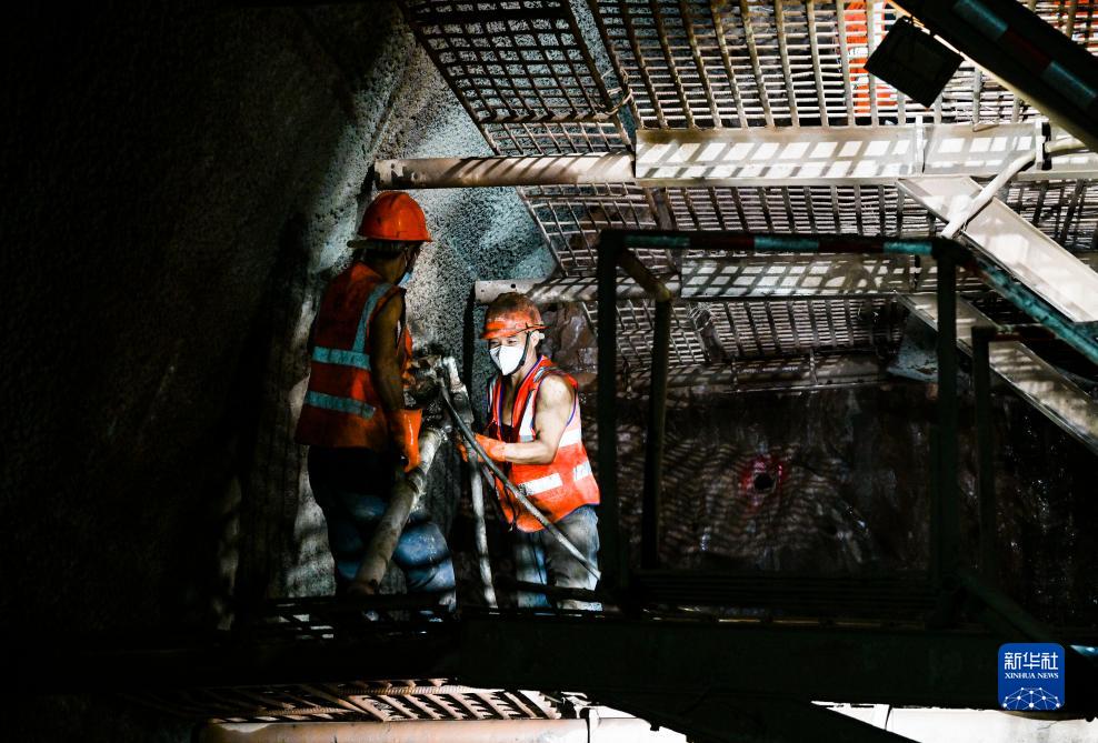 9月14日,工人在渝湘高铁重庆至黔江段站前3标张家山隧道项目作业。