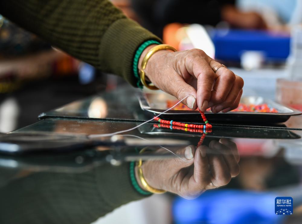 目前,合作社提供妇女居家灵活就业岗位68个,社员们可以领取材料,居家制作,按件计酬,不仅大大增加了群众的收入,更打造出富含多民族文化特色的集体经济产业。
