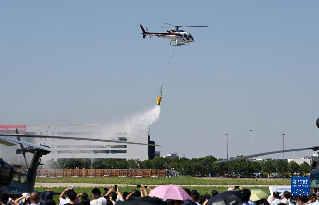 9月14日,AC311A直升机在开幕式上进行飞行表演。