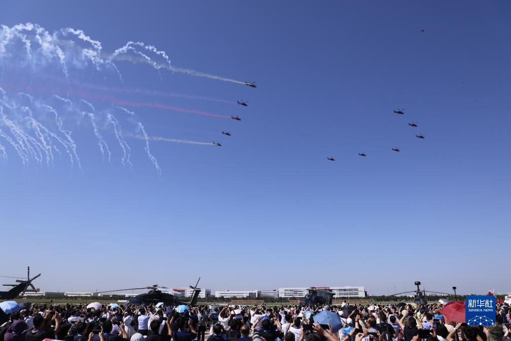 当日,第六届中国天津国际直升机博览会在天津市空港经济区开幕。陆军“风雷”飞行表演队在开幕式上进行飞行表演,先后向观众演示三机芭蕾、尾追螺旋、四机开花等8个课目的特技飞行动作,展示了陆军航空兵部队转型建设和实战化训练成效。