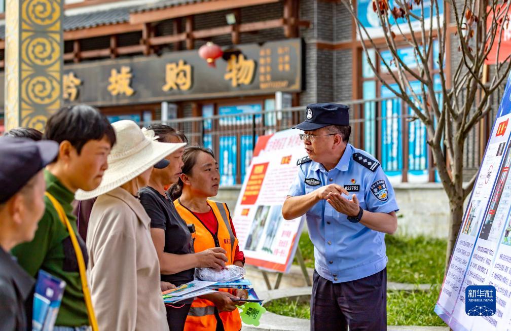 9月14日,民警在贵州省黔西市锦绣街道的广场上向人们讲解网络安全知识。