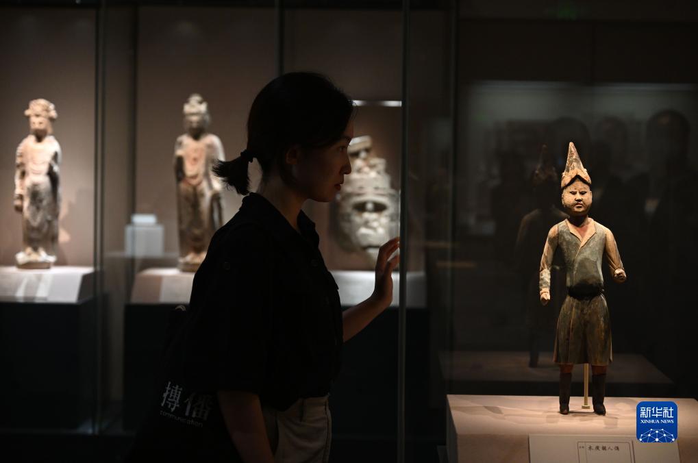 9月14日,观众参观甘肃武威慕容智墓出土的木质胡人俑。
