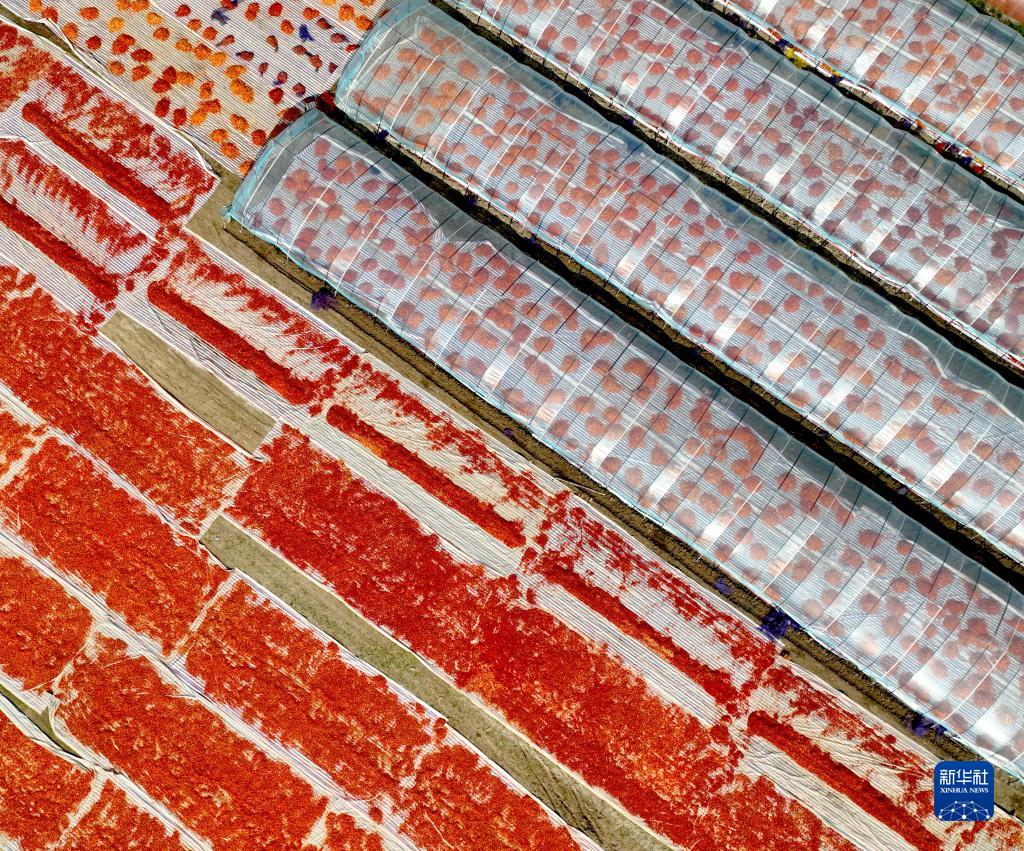 9月14日在安徽省亳州市谯城区双沟镇任小庙村拍摄的晾晒的辣椒。