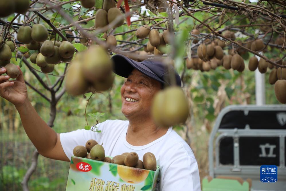 9月14日,农民在河南省驻马店市驿城区诸市镇石庄村猕猴桃种植园采摘猕猴桃。