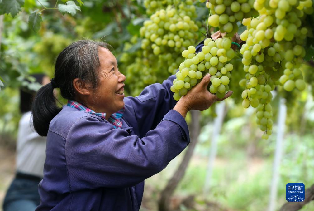 9月14日,果农在贵州省开阳县南江乡龙广村水果种植基地采摘醉金香葡萄。