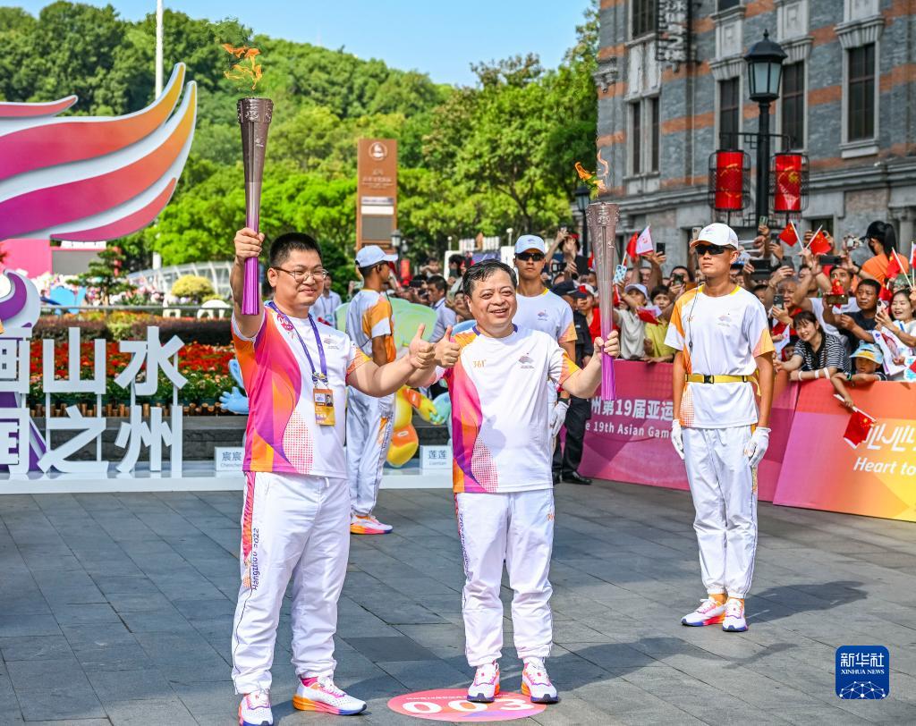 当日,杭州亚运会火炬在浙江省温州传递。