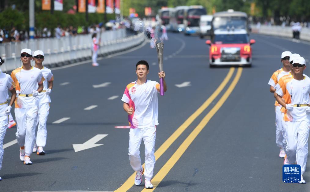 9月15日,火炬手王俊杰在火炬传递中。