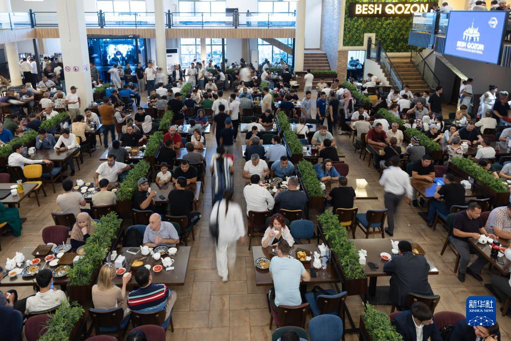 9月14日,在乌兹别克斯坦首都塔什干,人们品尝抓饭。