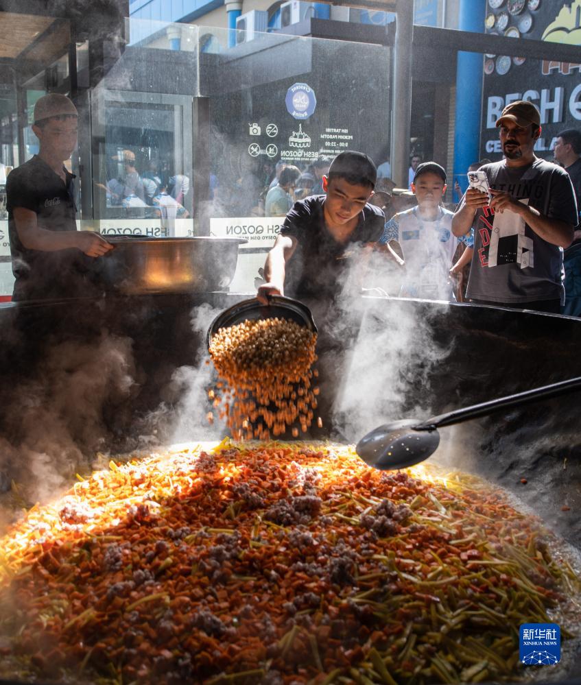 中亚抓饭中心位于塔什干电视塔附近,被人们誉为“中亚第一”抓饭中心,每天向人们提供美味的抓饭。抓饭是乌兹别克斯坦的传统美食,其主料为大米、胡萝卜、羊肉,不同地方的抓饭风味各异。抓饭的制作过程讲究严谨,主料与香料的融合令人唇齿留香,回味无穷。